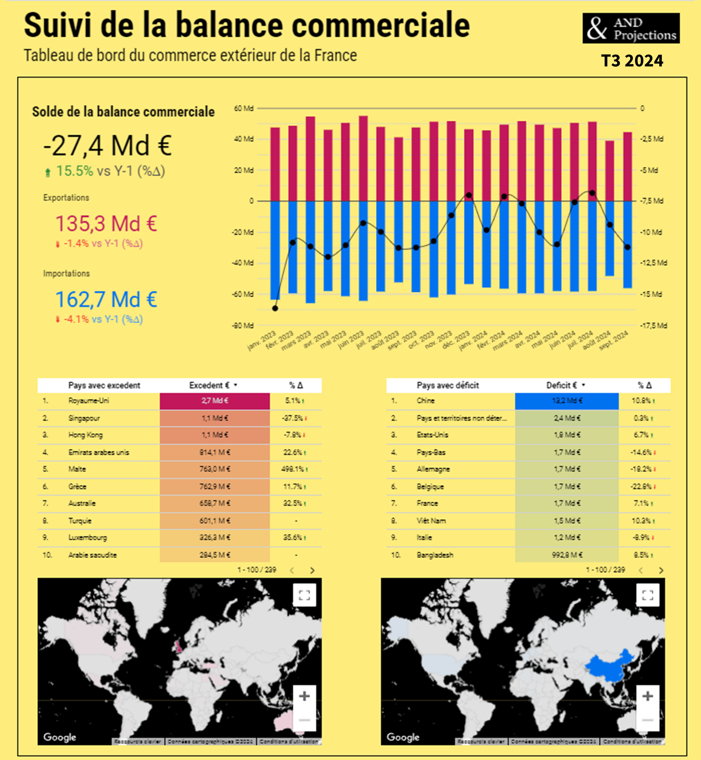 🌏 BALANCE COMMERCIALE – FRANCE – 3ème trimestre 2024