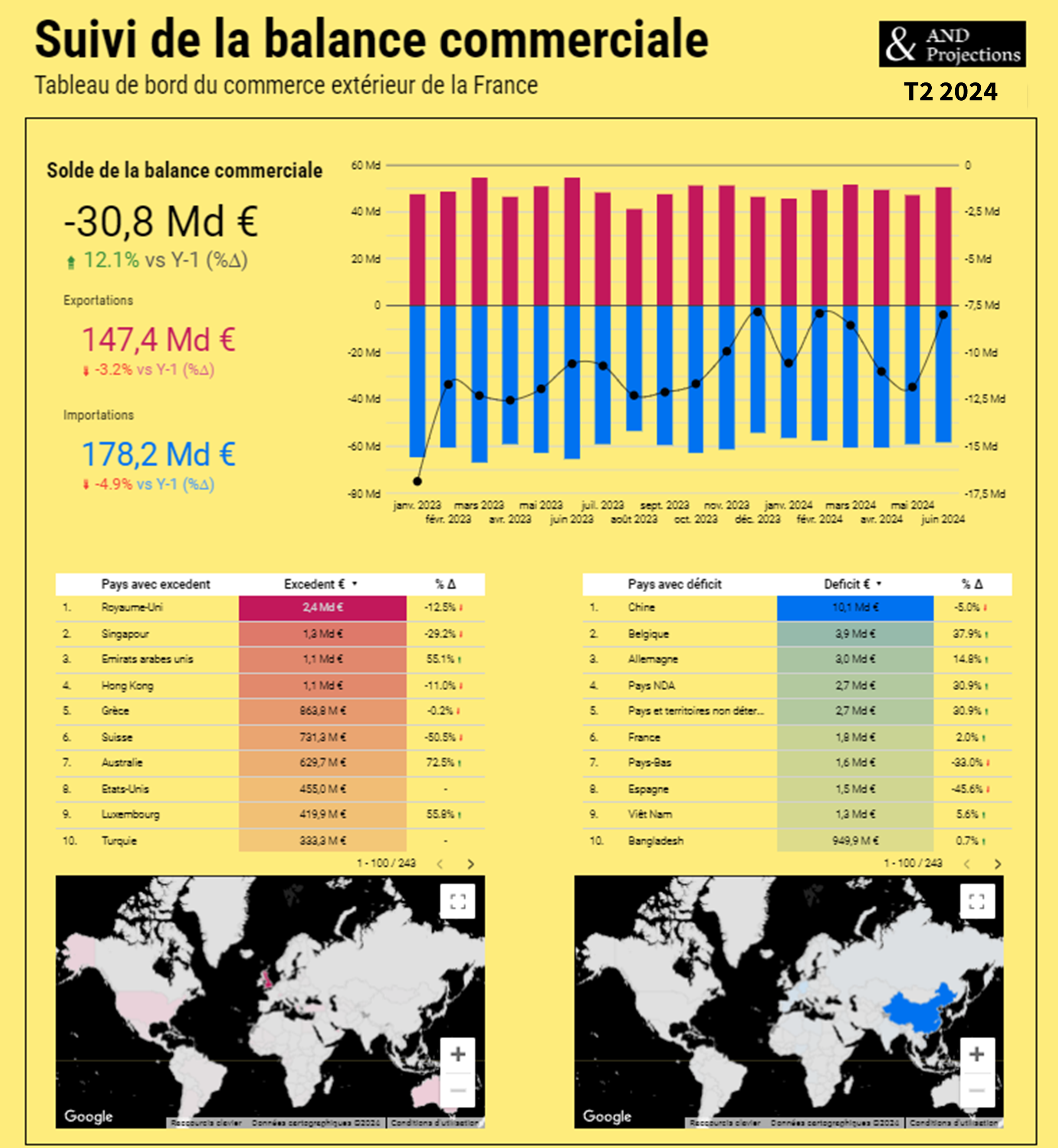 🌏 BALANCE COMMERCIALE – FRANCE – 2ème trimestre 2024
