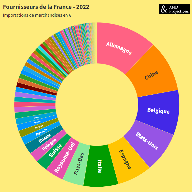 Eux 6 ce sont l’Allemagne, la Chine, la Belgique, les États-Unis, l’Espagne, l’Italie et les Pays-bas. Rien de surprenant dans le sens où ces pays sont, soit des voisins géographiques directs, soit des super-puissances économiques mondiales.